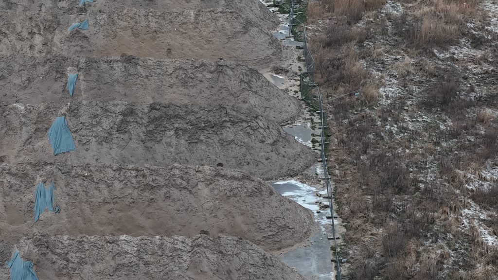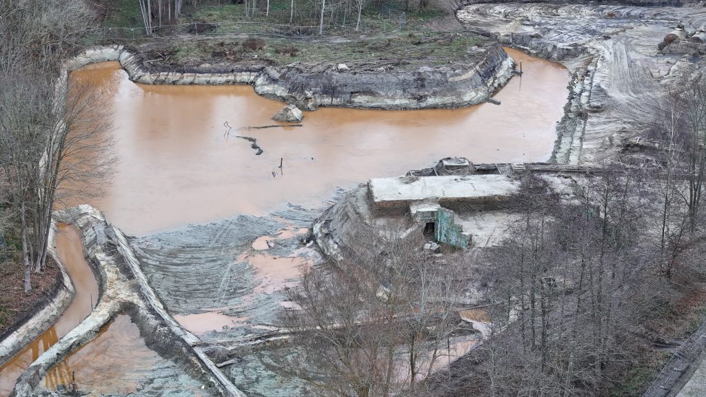 - eine unsachgemäße Lagerung kontaminierten Bodenaushubs auf ungeeigneten, nicht abgedichteten Flächen, von denen belastetes Wasser seit Oktober 2025 in den Untergrund gelangen kann
